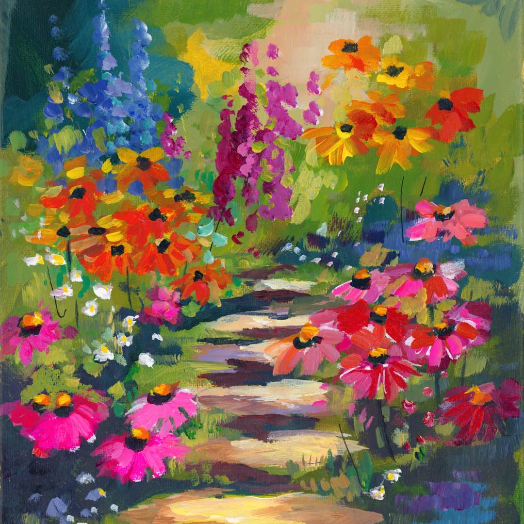 Step into a world of color with our newest tutorial! This stunning garden path is calling your name. Learn to handle thick paint and capture sunlight on flowers. It’s easier than it looks and so much fun. Grab your brushes and let’s bring this summer dream to life on your canvas today!