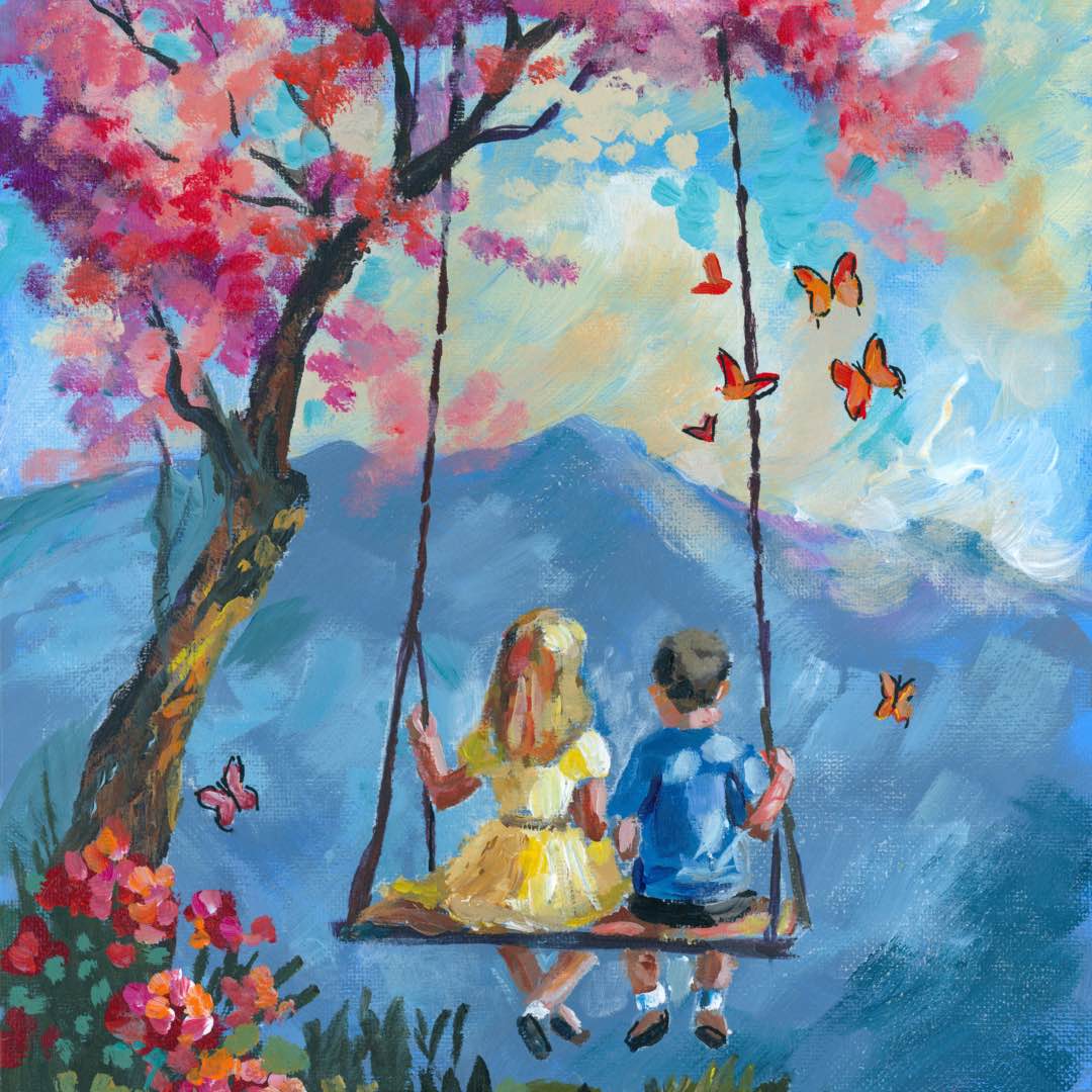 Step into a dream with this beautiful painting! Learn to capture the soft glow of spring, the delicate wings of butterflies, and the joy of childhood. Our tutorial makes it easy to create this heartwarming masterpiece. Let your creativity soar!