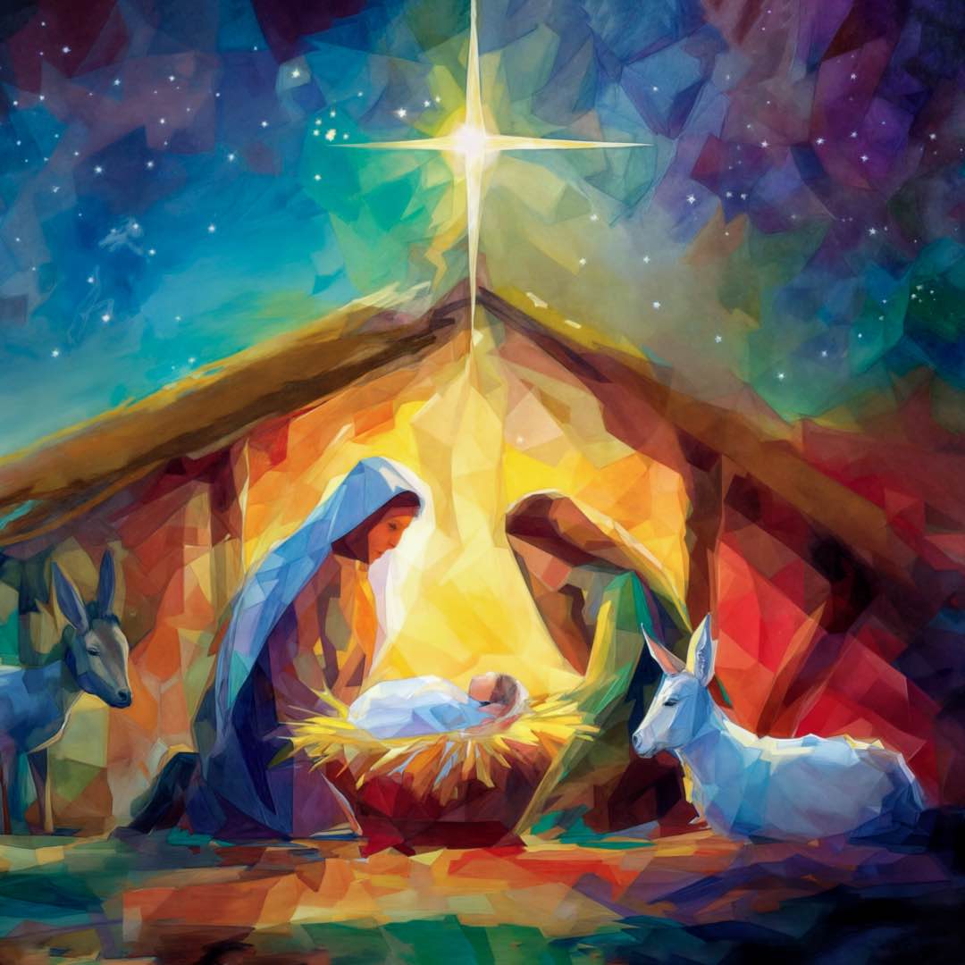 Step into the luminous magic of this modern Nativity scene, glowing with vibrant colors and a touch of warmth. The peaceful Holy Family under a radiant star inspires hope and joy, inviting you to reimagine and paint the wonder of the first Christmas night! You will be Mastering Acrylic Glow when you Paint a Christmas Nativity.